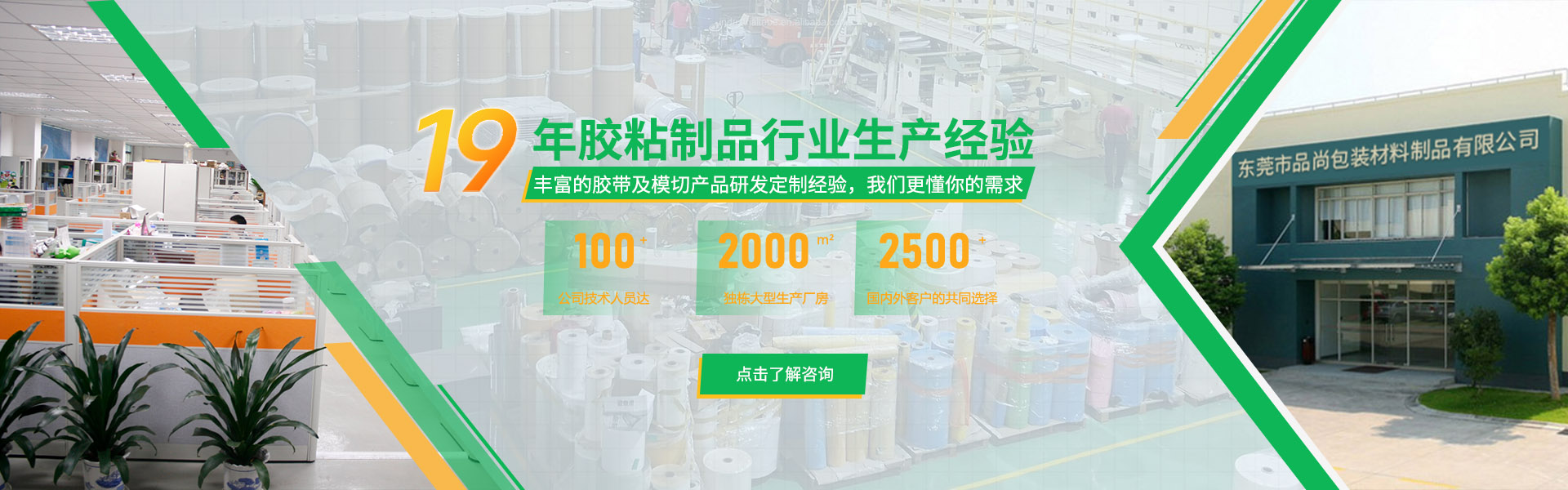 品尚包裝坐落于"世界工廠"珠三角核心腹地東莞市東坑鎮工業區,自2006年創立以來,始終深耕膠粘制品領域,現已發展成為集研發創新、智能制造、營銷網絡、售后維保于一體的現代化全產業鏈企業;